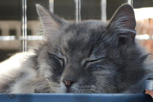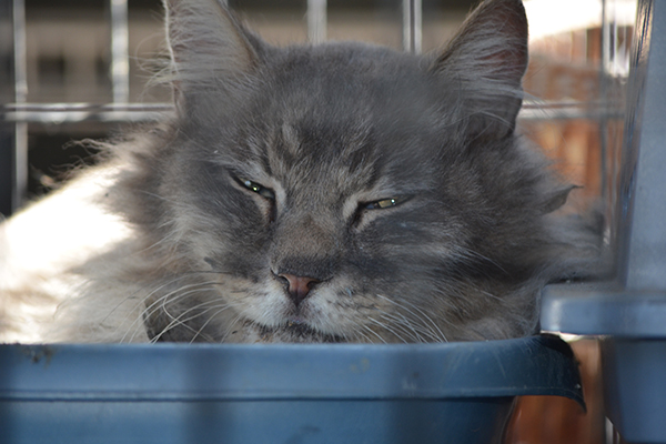 Nimbus has been one of our outdoor family since before the fire in 2012. He was one of four with their mom who just showed up. One left shortly after mom did. One met an awful end at the jaws of an ex-neighbor’s loose dogs